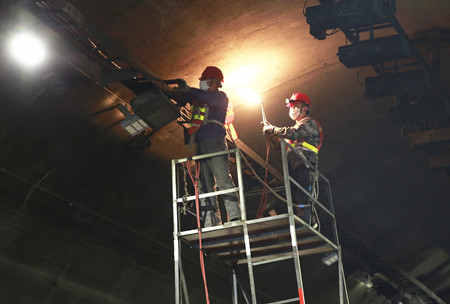 當(dāng)天工程主要是進(jìn)行燈具、風(fēng)機(jī)、布管線、火報(bào)、廣播、攝像頭控制箱的安裝,接線調(diào)試,瓷磚修補(bǔ),洞壁注漿、地面病害處置、垃圾清理等。據(jù)悉,截止當(dāng)天晚上10:30,隧道內(nèi)燈具、風(fēng)機(jī)已全部安裝完畢,黃土嶺隧道群整治已完成總工程量的60%。