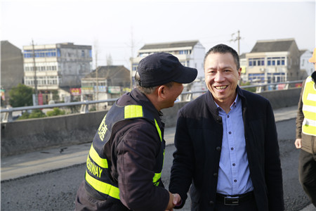 在施工現場,張建平對路面專項養護綜合督查組馮濟爐和葉榮江兩位同志說,你們就是公司的眼睛,要把握施工現場動態,把好施工質量和安全關;你們是公司的手,要督促工程保質保量快速推進。這是一次確立科學養護理念、鍛煉管養人才,展示公司硬實力的機會。看著這兩位老同志被陽光曬得黝黑的臉龐,張建平緊緊地握住他們的手,連聲對他們說:“你們辛苦了,你們辛苦了!”