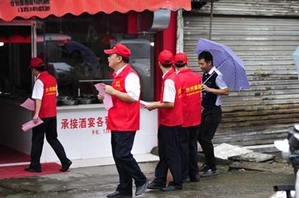 圖為志愿者隊合影 由部分非當班黨員,青年團員組成的第一支志愿小分隊,趕赴沙埠鎮,與沙埠鎮鎮政府一起開展創建全國文明城市的宣傳活動。小分隊統一身著印有的 “臺州高速臺州南收費所志愿服務隊”的紅色馬甲,在沙埠鎮有關同志的陪同之下,冒雨沿街分發創建全國文明城市的宣傳資料,并逐一耐心講解創建工作的有關注意事項。 沙埠鎮沿街衛生秩序較好,但局部角落還是存在一定的臟、亂問題,通過鎮工作人員和志愿者們的勸導,群眾們紛紛表示要響應創建全國文明城市的號召,從自身做起,為創建出一份力。 王樹聲