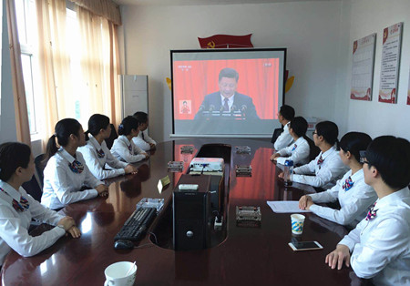 圖為員工在認(rèn)真收看十九大開幕會(huì)