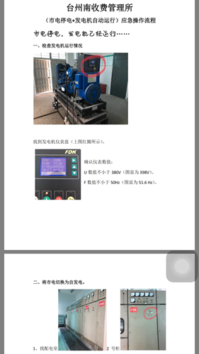 每一位參加學(xué)習(xí)的人在金小斌的指導(dǎo)下,對(duì)整個(gè)自發(fā)電流程從頭到尾進(jìn)行了一遍演練,以便掌握基本要領(lǐng)。同時(shí),該所還為員工以圖文并茂的形式準(zhǔn)備了停電時(shí)發(fā)電機(jī)啟動(dòng)和未啟動(dòng)的兩套操作流程,對(duì)每一個(gè)操作步驟都作了詳細(xì)的注解,清晰明了,簡(jiǎn)單易懂。