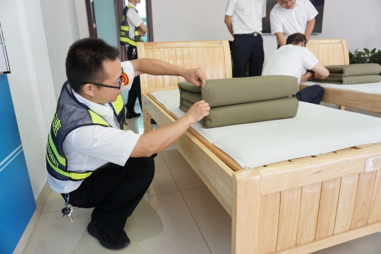 活動現場,裁判宣布比賽規則及打分標準:評分從被子整體形狀、平整度、棱角明顯、折疊時間等方面判斷,規定在5分鐘內完成,共設置一、二、三等獎三個獎項。內務半軍事化在該所已是常態,參賽選手們很快進入狀態,從鋪到疊再到整,駕輕就熟,均能在規定時間內整出“豆腐塊”。評委現場進行點評和打分。經過競逐,最后副站收費四班何翊平奪得一等獎。比賽分四輪進行,且全程用時不到1個小時。