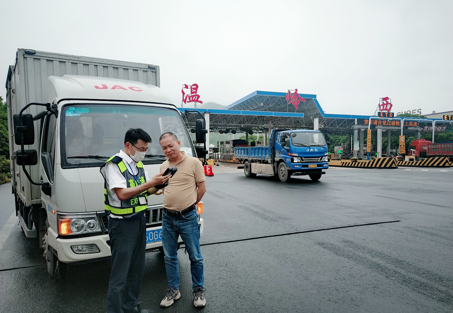 為方便服務ETC客戶,溫嶺西收費站設置了ETC志愿服務點,由班組人員和行政人員組成ETC服務小組,全力做好服務保障工作,及時有效解決ETC車輛問題。