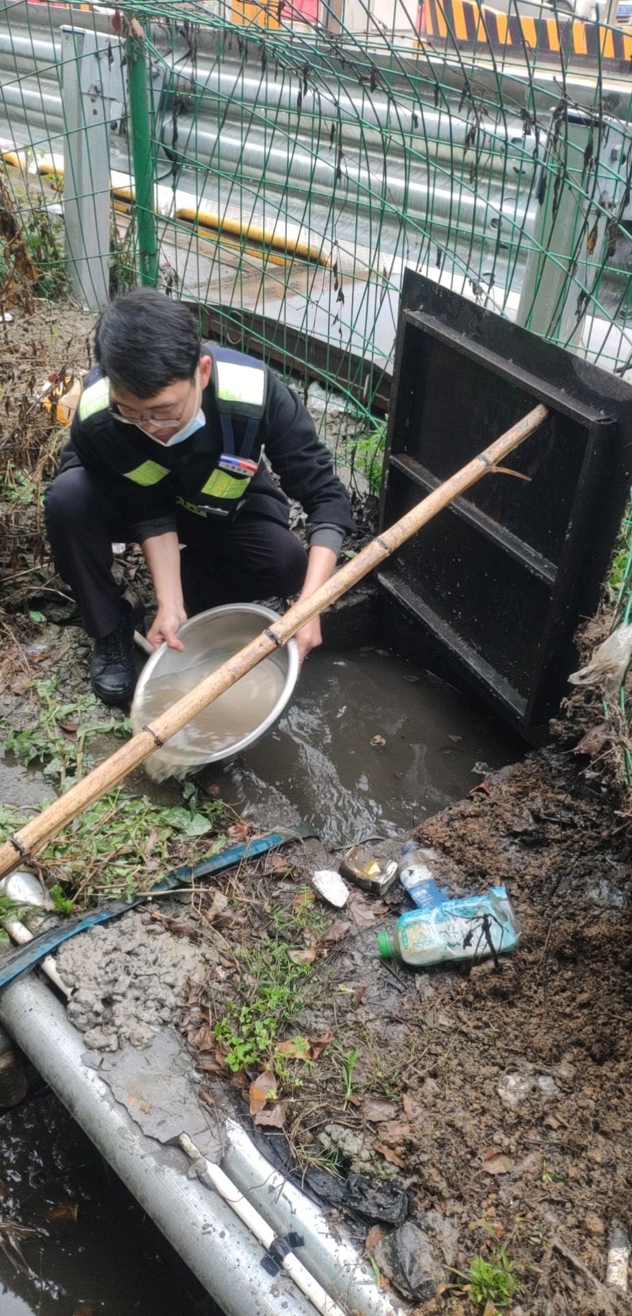 找出原因后,鄭星趕忙跑到所里取來一個(gè)水盆和一根木桿子。他用木桿支起排水坑上的蓋板,將坑里的積水一盆一盆地舀到旁邊的排水溝里。引導(dǎo)完車輛的林華平也過來協(xié)助鄭星。雖然此時(shí)外面下著雨,但他們?nèi)粵]顧上,只盼著舀水這個(gè)措施能夠有效,11號(hào)車道能夠早點(diǎn)恢復(fù)使用,進(jìn)口秩序能夠早點(diǎn)恢復(fù)正常。 最后在鄭星和林華平的冒雨搶修下,排水坑里的水位總算有所下降,11號(hào)車道在關(guān)閉二十多分鐘后終于恢復(fù)使用,進(jìn)口車輛也恢復(fù)暢通。 因地磅傳感器長(zhǎng)期被雨水浸泡,可能還存在一些潛在問題。再者,排水坑里的水位雖有所下降,單憑人力實(shí)在無法在短時(shí)間內(nèi)排掉剩余積水。考慮到這些問題,班長(zhǎng)在搶修過后又將情況匯報(bào)給了維養(yǎng)中心,維修人員后序針對(duì)地磅問題進(jìn)一步展開排查和維修工作。 趙育辰
