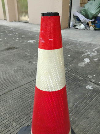 大溪嶺隧道所執勤隊遇隧道內車輛事故、拋錨等會出警預警,處理險情時則會在車輛后方150米處擺放反光警示椎(俗稱小紅帽),它是臨時分隔車流、引導交通,指引車輛繞過危險路段,保護現場設施和人員安全,起隔離警示作用。小紅帽的頂端有層反光膜,不用時以套疊式放置,使用時再逐個抽拔出來,因經常抽拔,表層反光膜與桶體摩擦而導致反光膜脫落,一陣風就會讓反光膜成碎片狀滿天飛舞,給隧道預警工作帶來極大的不安全因素,但若棄用這些沒有反光膜的小紅帽,則又很浪費。