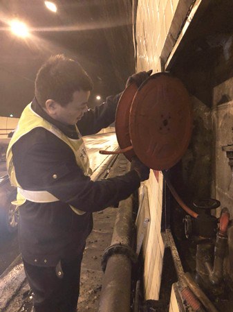 圖為檢查人員在檢查消防卷盤 大溪嶺隧道所負(fù)責(zé)人向來客介紹,隧道清洗工作需集團(tuán)下屬的施救中心、維養(yǎng)中心、隧道所員工,以及外協(xié)單位、養(yǎng)護(hù)公司等人員的積極配合,分工合作,將利用兩天時(shí)間完成大溪嶺雙向隧道的清洗維修任務(wù)。張金財(cái)再次稱贊表示,控制隧道清洗時(shí)間能有效地緩解地方交通壓力、節(jié)能減排。 2018年度春運(yùn)即將開始,各方檢查人員借此次隧道清洗機(jī)會(huì),全面排查影響隧道暢通的安全隱患,做好隧道內(nèi)設(shè)備設(shè)施的維修保養(yǎng)工作,為創(chuàng)造平安節(jié)日提供保障。 陳智慧