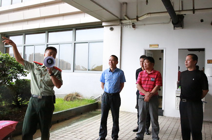 圖為市消防支隊防火處工程師陳立安警官授課現場 會后,在項同富的總指揮下,所有人員冒雨到現場觀摩高層逃生演練和消防應急拉動滅火模擬演練。隨著一聲“演練開始”指令,大樓16層窗口冒出滾滾濃煙,被困人員使用緩降器順利降至5樓室外平臺。面對大樓南側的“火災”,兩組身穿專業消防服的參演人員迅速到位,一組拿水槍,一組提起滅火器,迅速撲滅火源。演練圓滿結束。消防專業人員在現場為大家點評演練,指出逃生、滅火過程中的細節問題和注意事項,并提醒大家面對火災,要先控火再抗火,掌握科學的滅火方法。