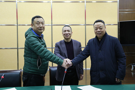 圖為集團副董事長、總經理張建平與另外簽約代表握手 鑒于玉環市酒店行業整體不景氣,效益低下,以及受制于原有建筑格局而難以涉足玉環婚宴市場等現狀,集團早在一年多前便組織人員籌備玉環大酒店下一輪承包經營工作,組織人員先后走訪調研國內數十家知名酒店行業,研究后續經營方案,認真比選合作伙伴,慎重考慮經濟效益和風險管控等因素,保障玉環大酒店后續有效發展。