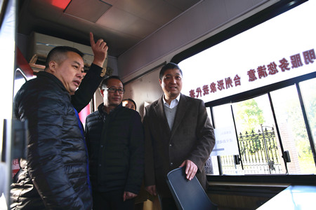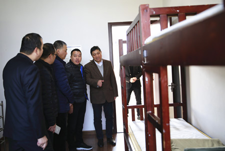 圖為市行政服務中心黨委副書記金偉一行在員工寢室參觀