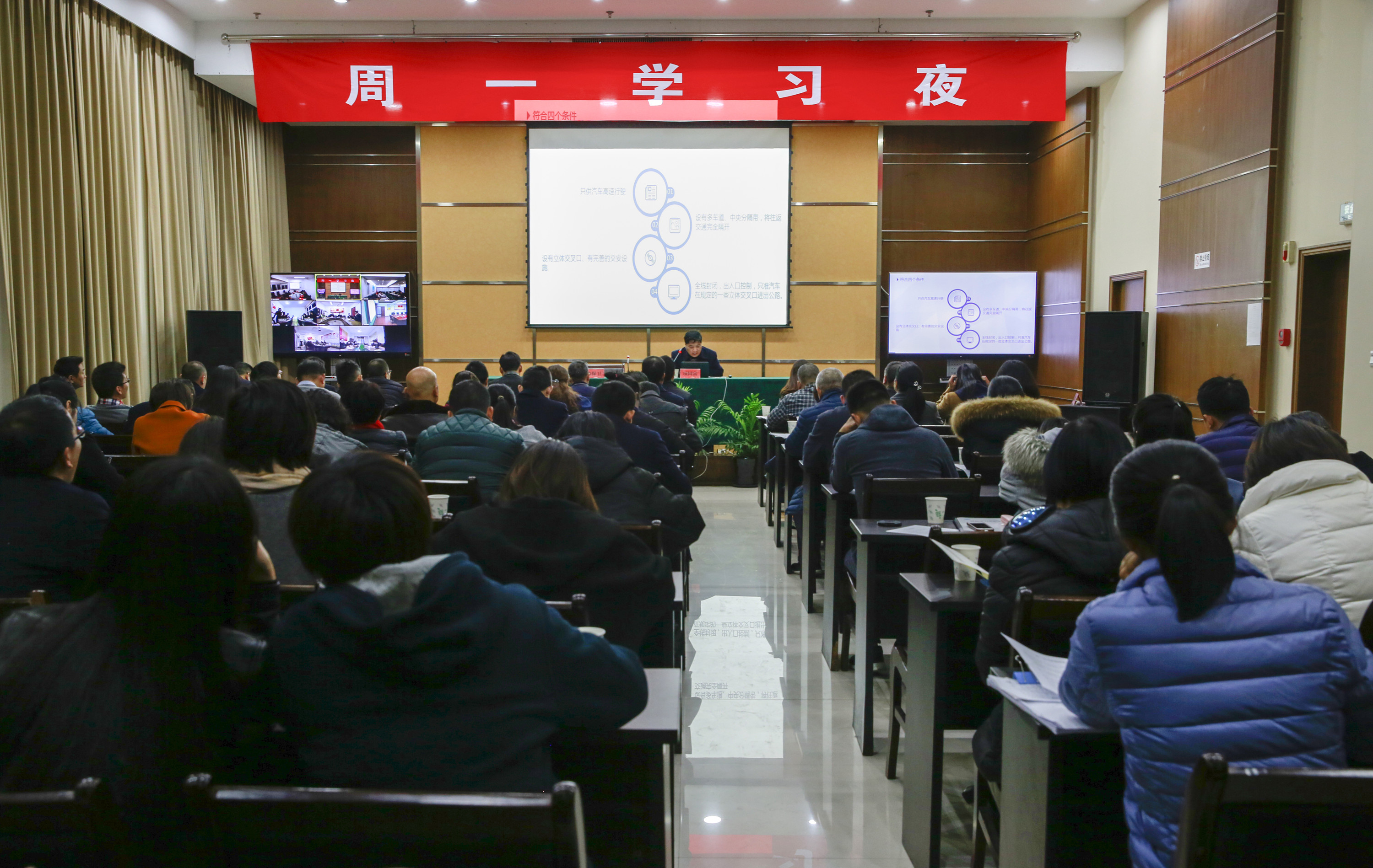 12月25日晚,集團組織大樓、子公司全體員工繼續開展周一學習夜活動,活動由集團總經理助理項同富主講《高速公路的昨天、今天、明天》,全體學員還觀看中國社科院辛向陽講授的《新時代是什么時代》視頻。副總經理陳保衛主持活動。