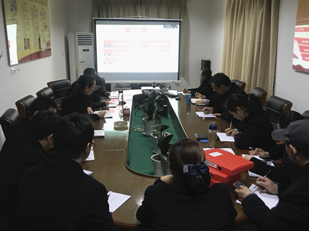 圖為集團(tuán)監(jiān)察室負(fù)責(zé)人傳達(dá)文件現(xiàn)場(chǎng)