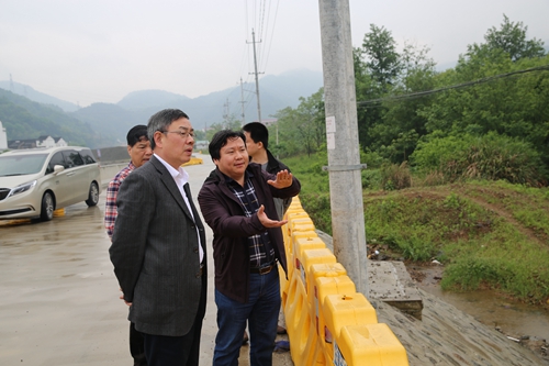 圖為在院橋互通1號橋檢查 細雨中,陳文波一行踏勘走訪了院橋大拉溝104國道跨高速公路主線施工現(xiàn)場、庫灘橋14國道橋洞、院橋互通1號橋等地,了解在實際工作中存在的一些難點問題和存在的安全隱患。