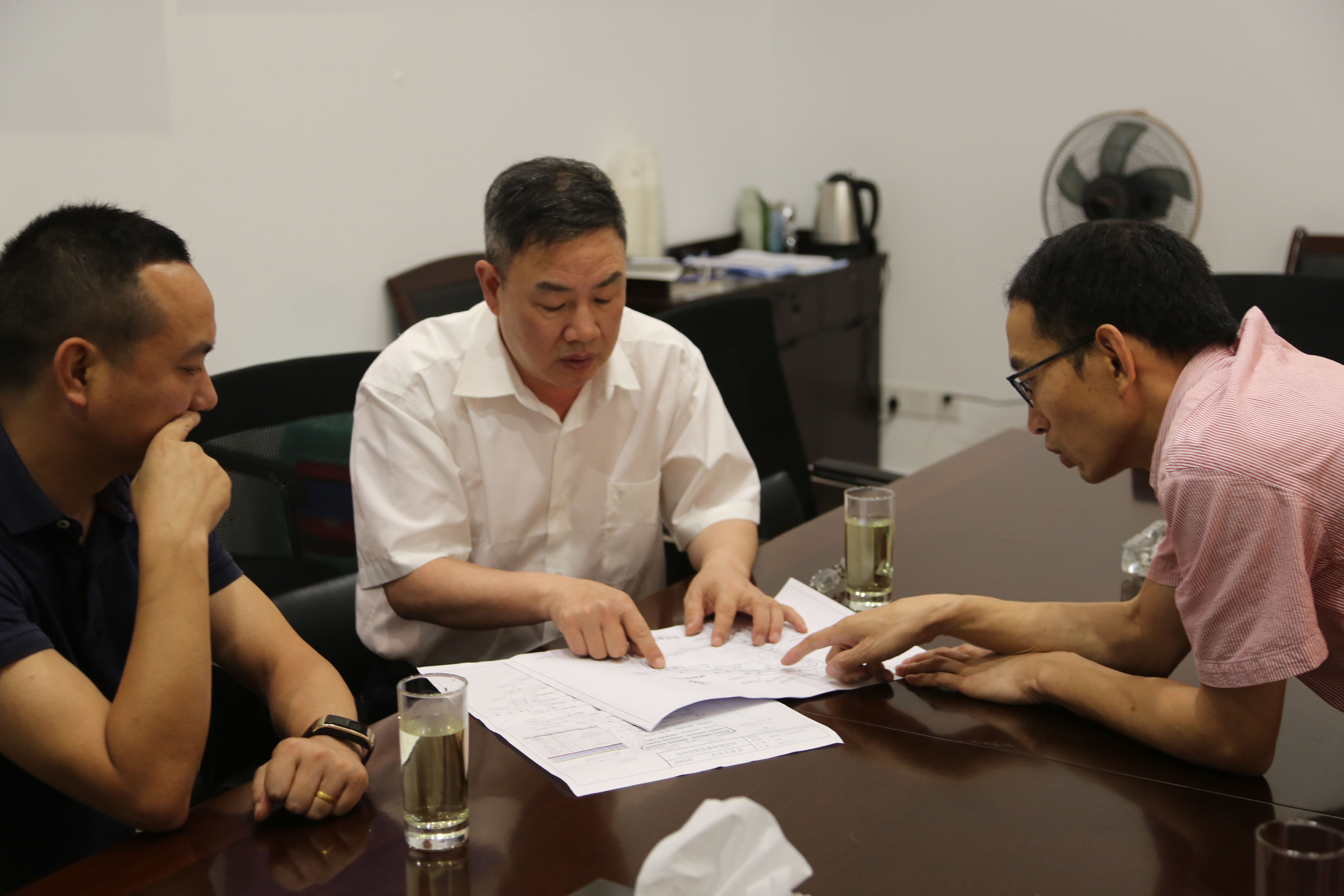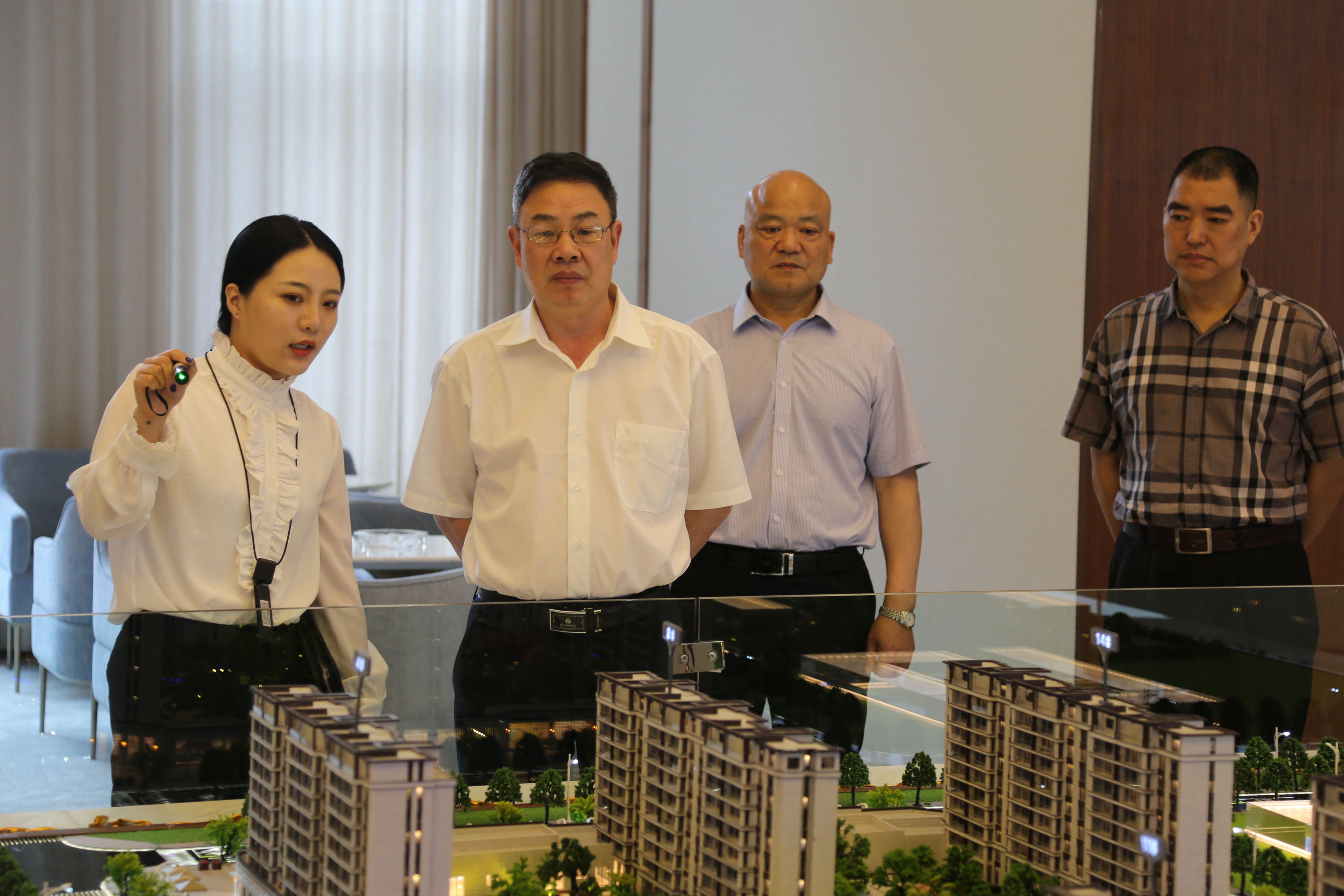 圖為集團領(lǐng)導(dǎo)陳文波聽取房產(chǎn)項目介紹
