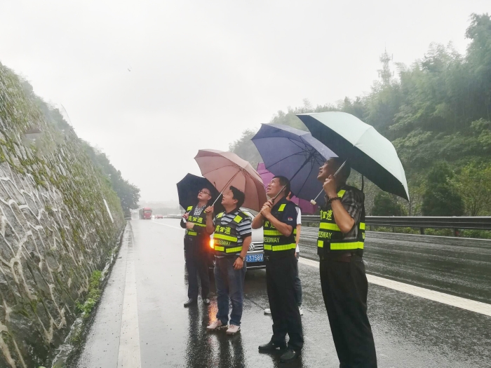 集團總工程師江輝帶領(lǐng)道路安全檢查組到沿線查看黃土嶺隧道北洞口高邊坡情況,以及大溪嶺隧道管理所消防集水池進水管被堵塞情況,研究確定整改方案,落實整改工作。