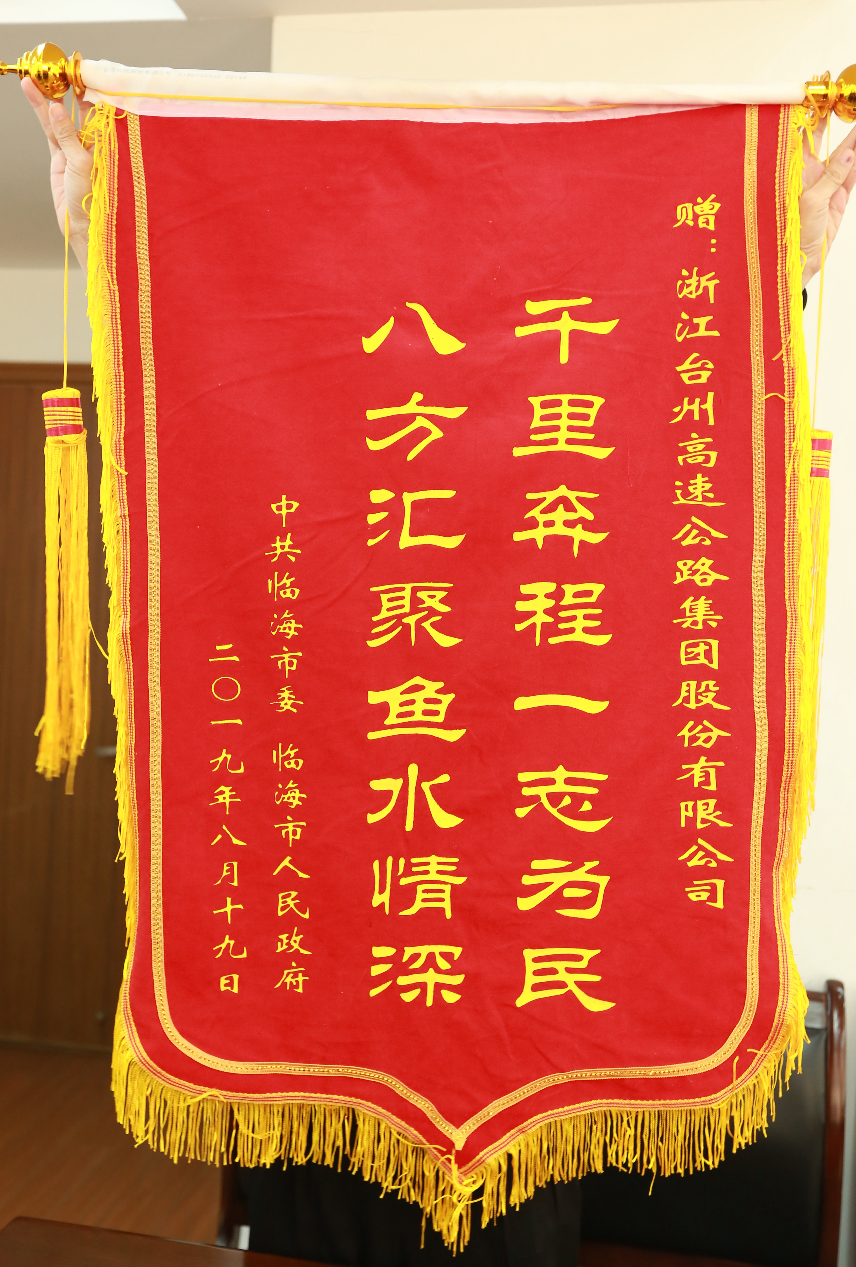 【洪水無情人有情】臨海市給臺州高速集團送來錦旗和感謝信 |