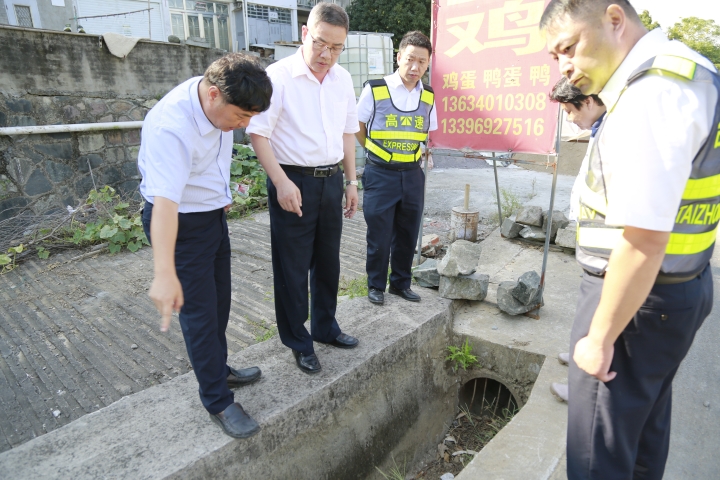 圖為陳文波檢查臺(tái)州收費(fèi)站內(nèi)廣場(chǎng)隔離墻