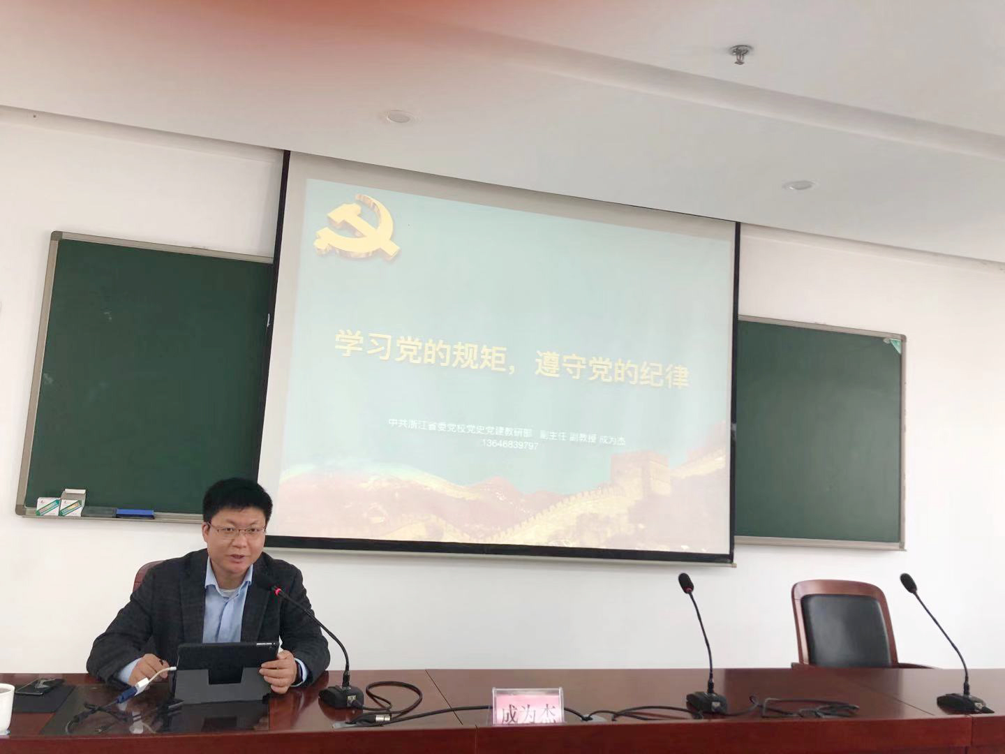 圖為省委黨校黨史黨建教研部副主任、副教授、博士成為杰以《學(xué)習(xí)黨的規(guī)矩 遵守黨的紀(jì)律—黨章黨規(guī)黨紀(jì)解讀》為題授課