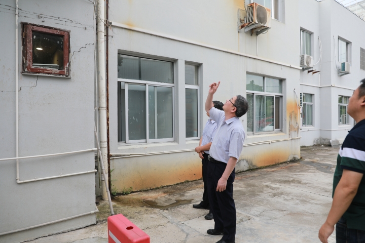 圖為陳文波查看墻體開裂情況 安全無小事。在溫嶺西收費所食堂的儲藏室里,陳文波仔細查看墻體瓷磚開裂情況,前期聽到所里反映食堂儲藏室的瓷磚剝落現象,他一直記掛著這件事,今天特地帶領安保部相關人員來到現場踏勘,了解實際情況。他叮囑旁邊的安保部經理周超:“小問題也要引起高度重視,要善于發現苗頭性的問題,針對墻體瓷磚開裂的原因要盡快得出專業的分析研判,需要維修的立即制定方案著手實施,千萬要保障安全。”隨后,他轉身對溫嶺西收費所所長楊瑩瑩交待道:“在此之前,要落實好這一區域的隔斷措施,寧可事先多做一點預防,不要事后亡羊補牢,安全問題麻痹大意不得。”