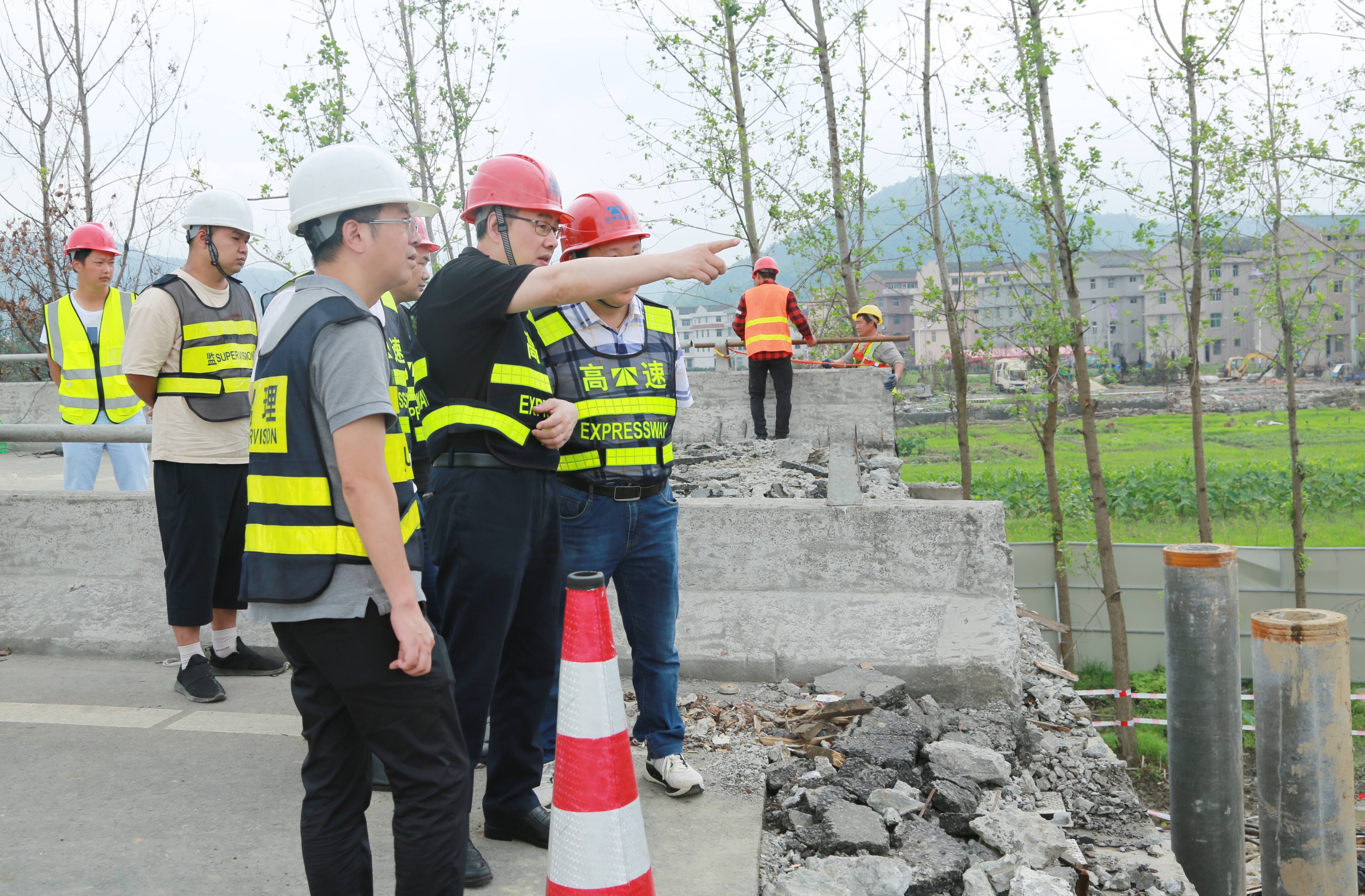 圖為陳文波提出有關施工要求 在施工現場,陳文波在向相關人員詳細詢問工程作業等情況后強調,要確保安全。時刻繃緊安全這根弦,特別是機械作業危險性較大,要嚴格按照操作規范進行施工,工人要嚴格做好防護措施。要保證質量。施工方要嚴格按照技術要求進行施工,監理方嚴格按照規范進行監督,確保橋梁維修高標準完成竣工。要搶抓進度。時間就是效益,工程部要每天安排人員進行值班,做好現場的監督和協調。確保工程按照計劃有序推進,保質保量完成匝道橋梁維修工程,為溫嶺西收費站早日全面恢復通車做出貢獻。 包啟曉