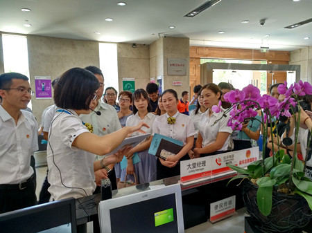 圖為參觀浙江泰隆商業(yè)銀行“小微金融服務(wù)”團員先鋒崗