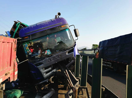 現場,事故車輛占據整個超車道和半個主車道,因此造成后方嚴重堵車。施救中心在接到報警后迅速出動,不僅配合警車在現場預警,而且想辦法盡快將事故車輛拖離車道,以免造成二次事故。隨后,養護部門到達現場清理。經過5個多小時奮戰,40多人的合力處理下,道路終于恢復了暢通。