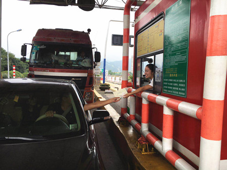 圖為臺州南收費所發放現場