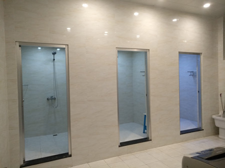 圖為一樓員工盥洗室 整修一新的食堂、浴室、員工活動室等,不僅從各方面的細節上極力營造了溫馨、和諧大家庭的良好氛圍,而且更好地解決了該所及維養中心、施救中心員工生活上的難題,使大家切實感受到公司對基層一線員工的關愛。 鄭瑛芝