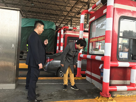 圖為檢查人員在收費崗亭檢查消防設施 當日,所長楊瑩瑩帶隊,副所長周超和杜佳共同參加,分別對宿舍區的用電、新辦公大樓的施工、收費站入口的雨棚安裝,以及監控室運行情況等進行了仔細的檢查,發現消防水栓的氣壓不夠高,配電房紗窗不牢固,管理制度的牌匾快掉落等問題,檢查人員當場要求相關人員及時維修和加固。 本次自查雖沒有發現重大安全隱患,但全所上下仍不會掉以輕心,將更加嚴格管理,不定期進行檢查,減少安全風險,確保春節期間無安全事故發生,使收費站安全管理真正做到“發現問題,及時整改,不留隱患,不留死角”。 鄭霞霞