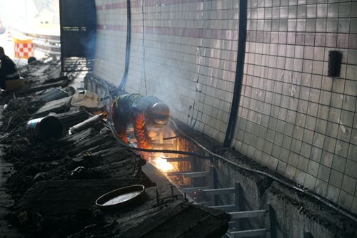 圖為施工人員在隧道高溫作業