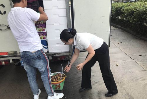圖為工作人員幫司機撿李子