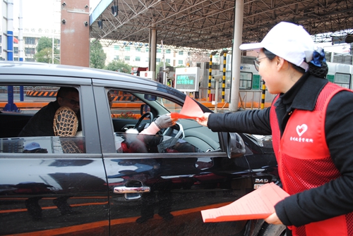 圖為志愿者向司乘人員發放宣傳單 活動現場,志愿者們送上熱騰騰的散粉糊、紅糖姜茶,并向貨車司機發放貨車非現金支付優惠宣傳單。大家積極為過往的司乘人員送上冬日的一份溫暖和關懷,驅散他們路途的寒冷,贏得了他們的肯定。
