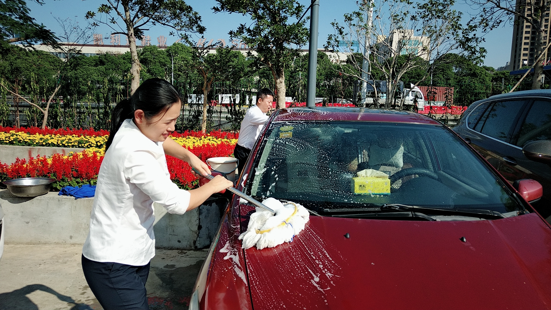 黨員服務群眾免費洗車 |
