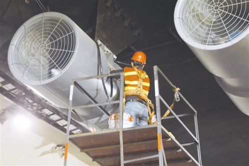 11月1日是隧道整治施工的第四天,工地現(xiàn)場(chǎng),多個(gè)作業(yè)面同時(shí)鋪開(kāi),施工人員三五個(gè)一組共近60來(lái)人,有序分工,緊鑼密鼓地開(kāi)展各項(xiàng)作業(yè)。施工現(xiàn)場(chǎng),有的站在活動(dòng)腳手架上安裝燈具,有的在布管線(xiàn)、接線(xiàn)調(diào)試,有的在安裝風(fēng)機(jī)……一項(xiàng)工序銜接著另一項(xiàng)工序,各個(gè)工種環(huán)環(huán)相扣。截止當(dāng)晚10點(diǎn)30分,隧道內(nèi)燈具、風(fēng)機(jī)全部安裝完畢,黃土嶺隧道群整治已完成總工程量的60%。