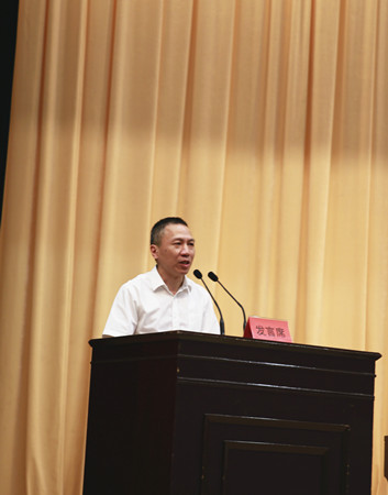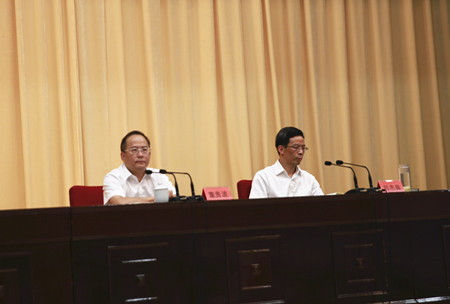 圖為市委常委、常務副市長董貴波和市委常委、市委組織部部長呂志良分別作講話