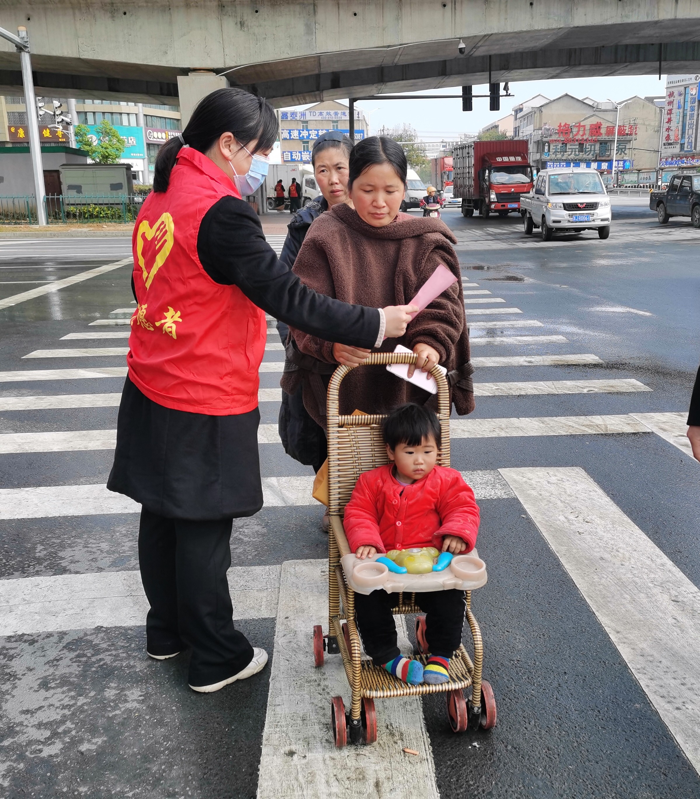 (圖為志愿者們向過往行人分發倡議書)