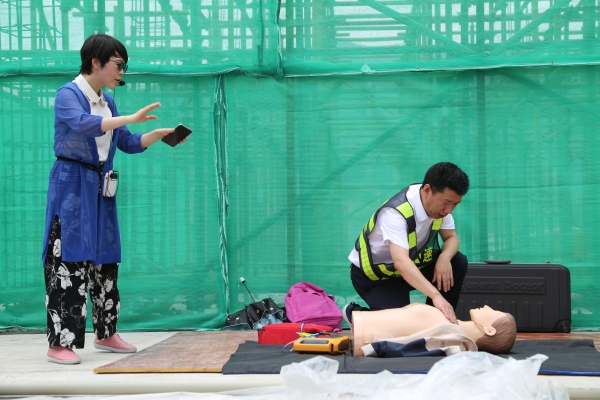 圖為活動人員參加心肺復(fù)蘇實操演練 此次演練的第二項重頭戲是心肺復(fù)蘇術(shù)培訓(xùn),建筑工地多為臨時工棚且露天作業(yè),受臺風(fēng)影響較大,心肺復(fù)蘇對于遭遇意外的施工人員來說如同救命稻草。高速集團安保部邀請了臺州職業(yè)技術(shù)學(xué)院副教授李美芬到演練現(xiàn)場進行心肺復(fù)蘇術(shù)培訓(xùn),李美芬詳細(xì)講解了心肺復(fù)蘇術(shù)和AED的理論知識、操作要領(lǐng)和具體方法,并規(guī)范熟練地進行了現(xiàn)場演示。隨后參與演練的各部門代表上臺學(xué)習(xí)實操,李美芬細(xì)心指導(dǎo)每一個動作,耐心講解每一個要點,教學(xué)效果顯著,有效提高了參演人員的急救技能。 防汛防臺無小事,安全生產(chǎn)有保障,房產(chǎn)集團下有多個在建工程項目,此次演練能夠進一步強化現(xiàn)場人員的防汛防臺意識,普及自救急救知識,提高工程管理人員、施工就業(yè)人員的防災(zāi)抗災(zāi)和應(yīng)急處置能力。 盧丹麗