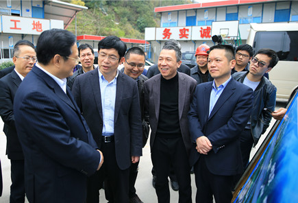 圖為市長張兵與公司總經理張建平在6#立交橋上親切握手